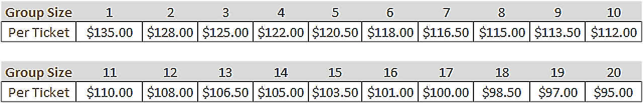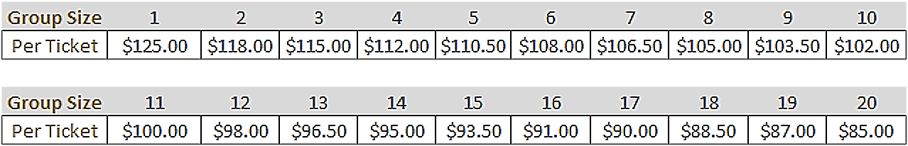 Investigator Prices per Group Size *Prices do not include taxes or credit card fees