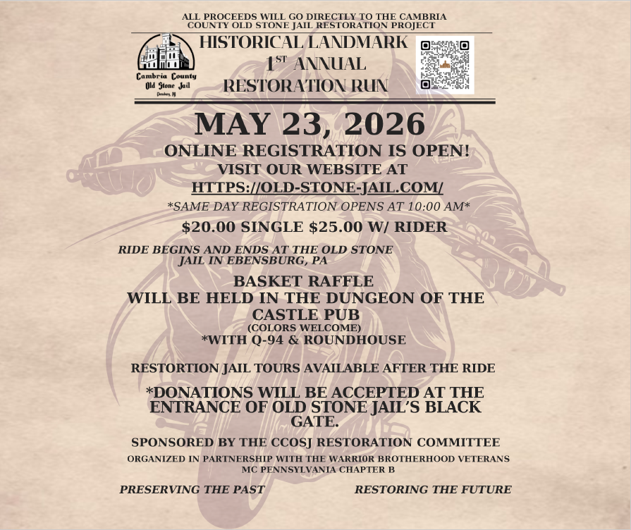 Located at The Cambria County Stone Jail, Ebensburg, PA. Hosted by The Doss House of Loretto, PA.